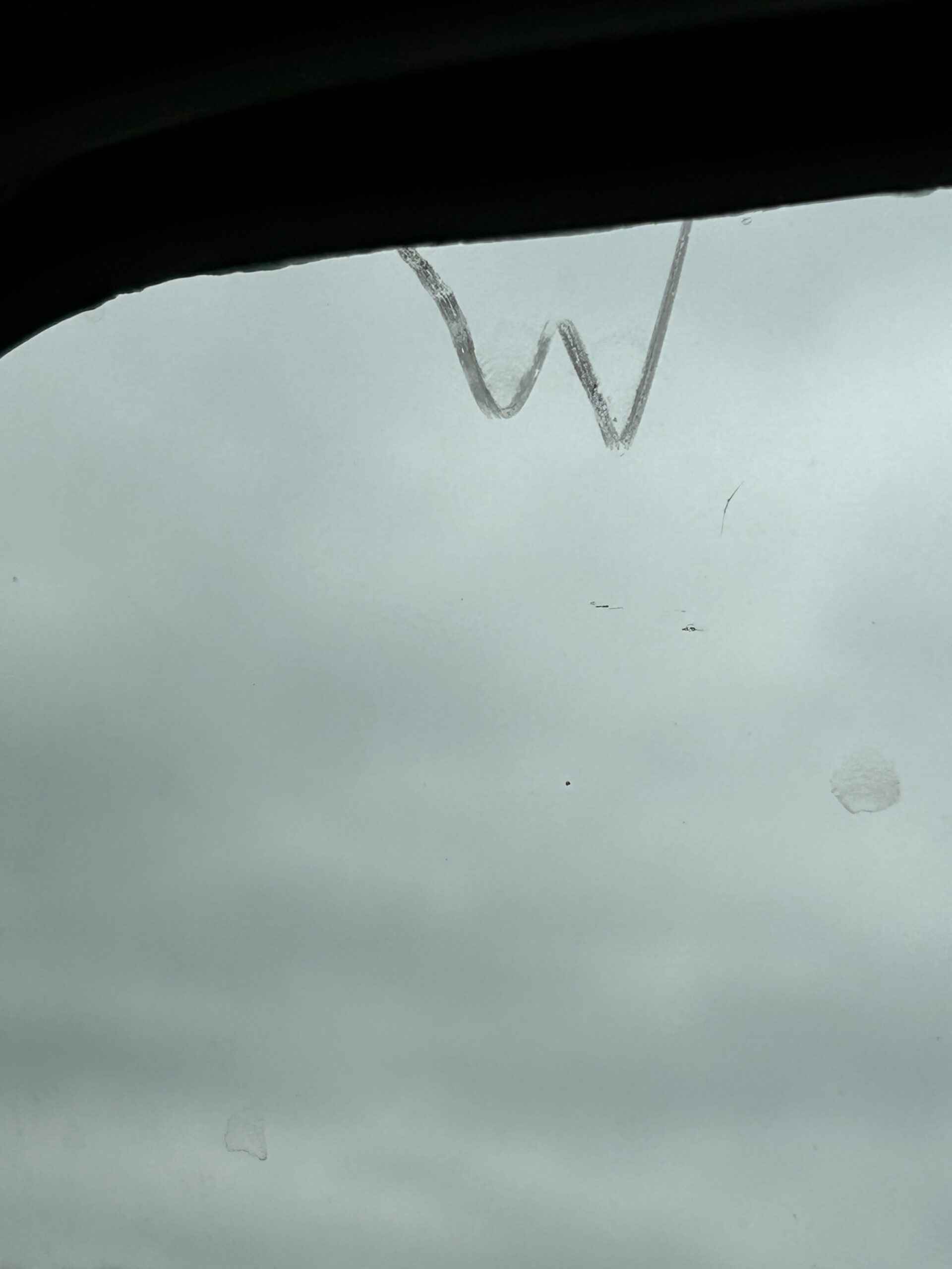 On the outside of the backseat window a mysterious W appeared. We thought it meant we were going West. Shortly thereafter as we barreled down the interstate doing 80, we saw a group of four women sitting in a circle of camp chairs on the grass beside the road, ten miles from nowhere. Two cars were parked on the shoulder, a football-field distance away. Another mystery. We decided it was a witches’ coven meeting for morning coffee, but we could be wrong.